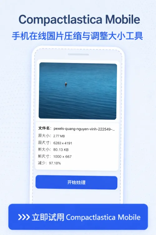 Compactlastica Mobile 可以帮助用户减小图片文件大小,节省手机空间,也方便上传到网站、表单、博客和社交媒体。