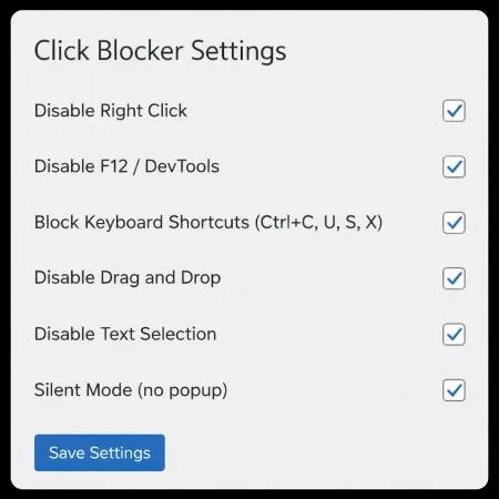 Clicklastica is a lightweight WordPress plugin designed to discourage casual content copying on the frontend. It focuses on simplicity and ease of use while keeping all original protection features.